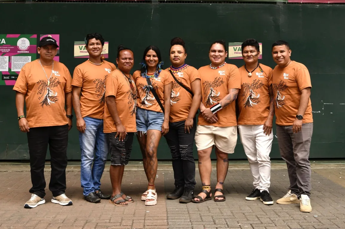 A Estação Primeira de Mangueira recebe nesta semana um grupo de artistas indígenas do Oiapoque. O Coletivo Waçá Wara, de múltiplas áreas artísticas como artes visuais, teatro, audiovisual, dança e música, embarcou rumo ao barracão da Verde e Rosa para uma imersão artística que celebra ancestralidade, arte indígena e trocas culturais. Foram três dias de atividades em que estiveram presentes os artistas Claudemir dos Santos, Davi Marworno, Dieimisom Sfair, Diogo Karipuna, Jhon Karipuna, Noel Henrique, Tairene Karipuna e Yermollay Caripoune.